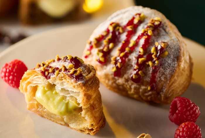 冬の新作「焼きたてカスタードアップルパイ ピスタチオベリー」(550円/税込)は、ピスタチオペースト入りのカスタードクリームが主役。