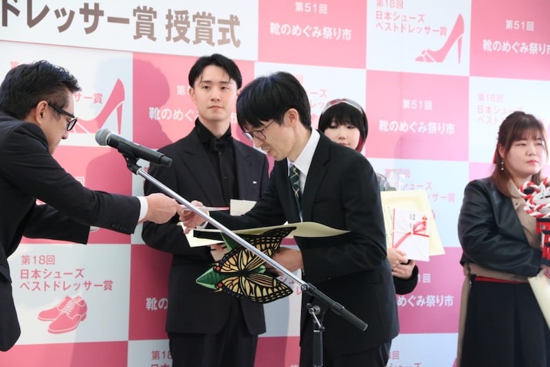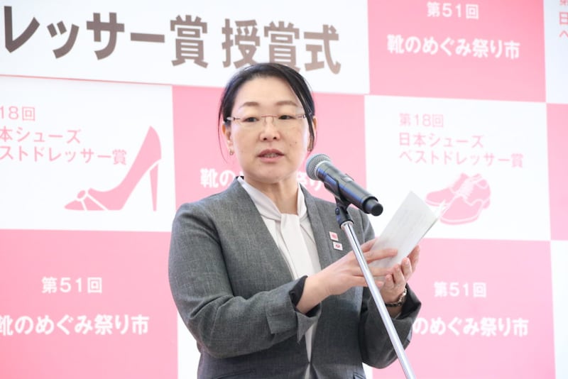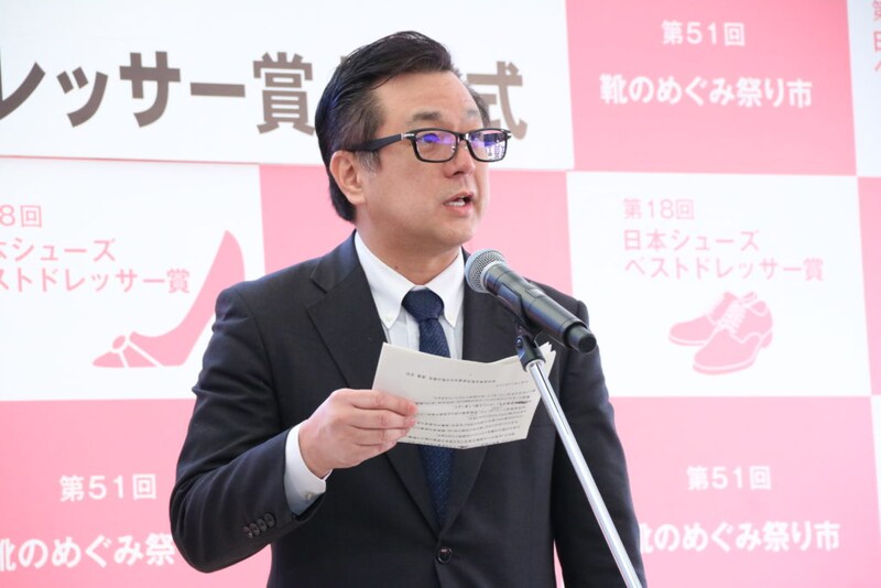 「本日受賞された方々に贈呈される靴は、受賞者自らがデザインしたものを靴職人が丹精込めて製作したこだわりの一品です。受賞者の皆様には、これを契機に本区の物づくりに触れていただき、その魅力を広く発信していただければ幸いです。」