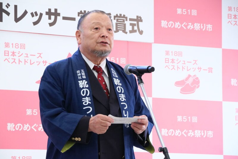 まず初めに、靴のめぐみ祭り市 実行委員会 日本シューズベストドレッサー賞選考委員会の恒次勝利会長より開会のご挨拶。