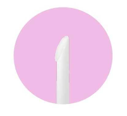斜めカットのブラシチップを採用し、液の付きすぎを防ぎつつ塗布量の調整が簡単。短めの毛丈で肌当たりも優しく、キャップ内側も汚れにくい設計です。