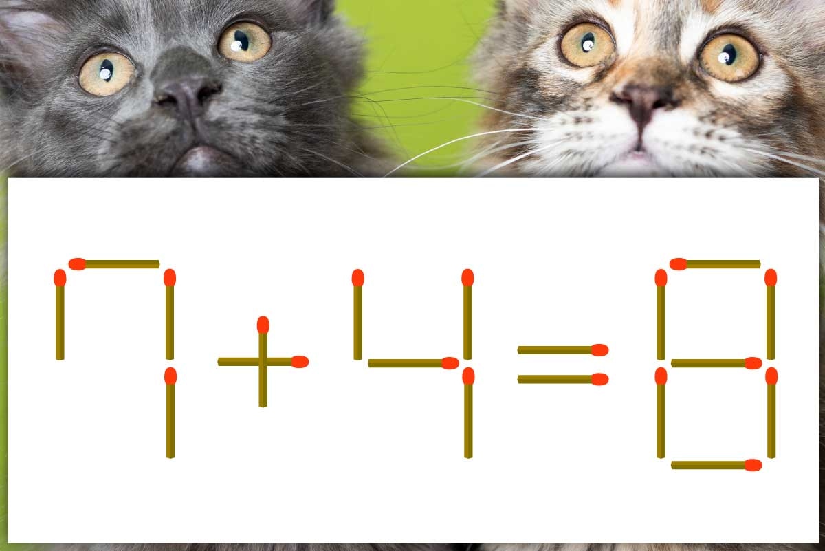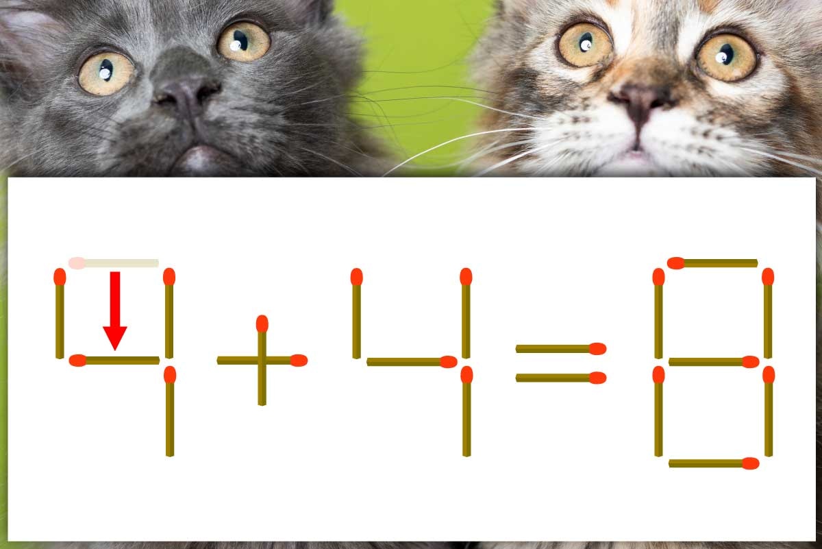 「7」のマッチ棒を1本移動させて「4」を作り、「4+4=8」にする。※解答は複数ある場合があります。