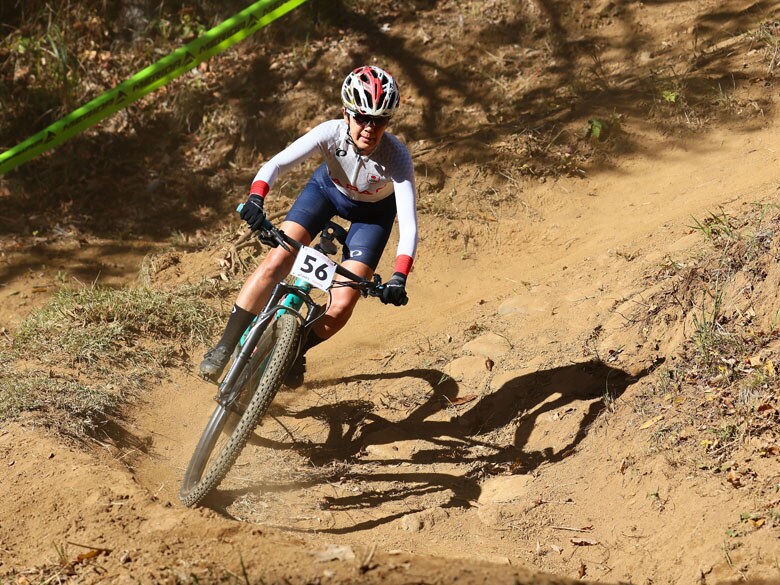 11月24日、東京2025デフリンピックのマウンテンバイク(クロスカントリーショートトラック)に出場した早瀬落車したレースのスタート地点でグータッチ