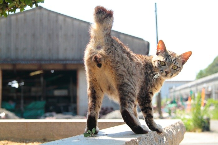 浮足立って、尻尾が上がっちゃうにゃんたま君