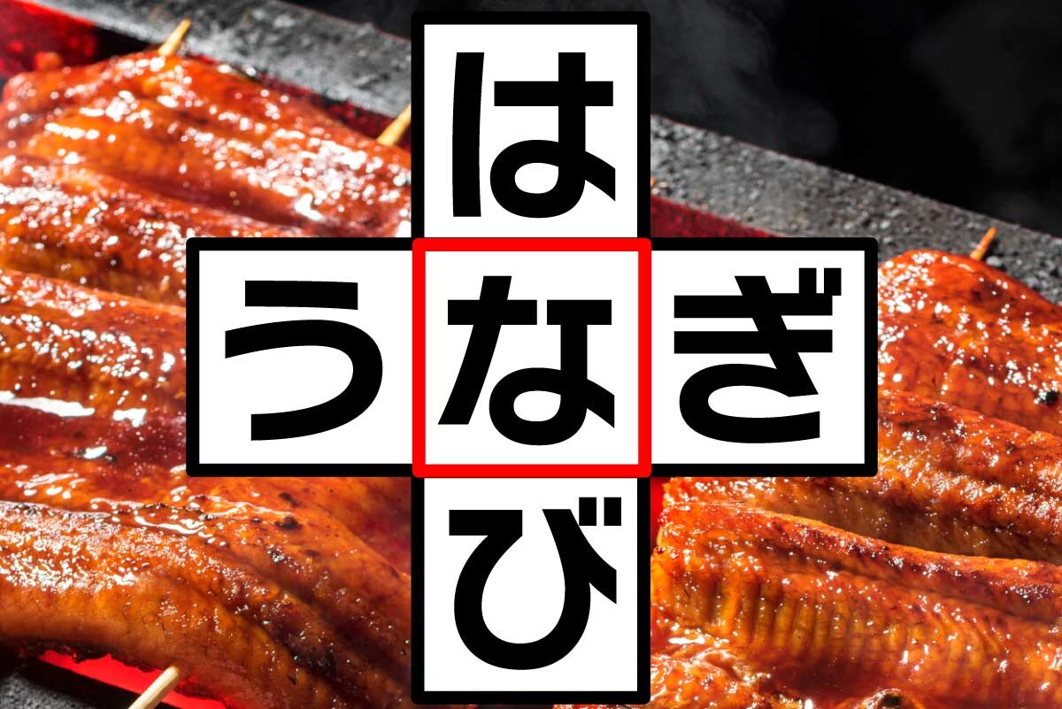 【問題】空欄に入る文字は? 【ヒント】タテ:夏の風物詩。英語では「firework」! ヨコ:「ひつまぶし」「蒲焼」「土用丑の日」といえば?