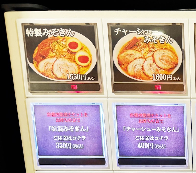 インターネットで事前予約した人だけが食べられます。予約時に税込1260円を支払い、それがそのままラーメン代金となります。つまり、ラーメンだけ食べたい場合は、店舗で支払う必要はありません。しかし筆者は店舗で「特製」(税込350円)にクレードアップ。さらにトッピングの「切り落としチャーシュー」(税込100円)と、サイドメニューの「チャーねぎ玉丼」(税込380円)を追加オーダーしました。