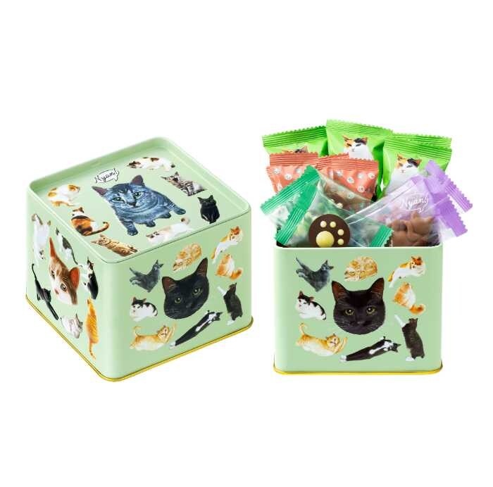 「みゃみれ缶」(48g・6個入1,188円)は、4種のチョコ菓子を詰め合わせた猫まみれの可愛い缶♪