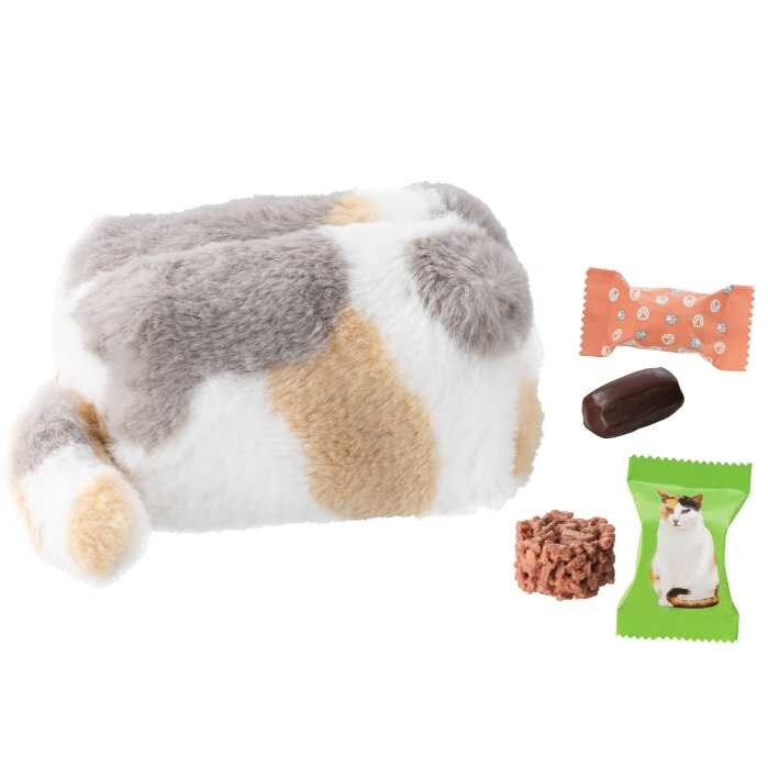 「にゃんポーチ(パステル三毛)」(30g+24g・918円)は、三毛柄が大人可愛く、食べた後も使える万能ポーチです。