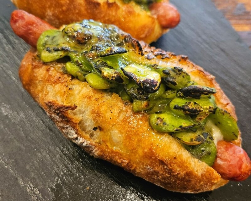 【初登場】神戸・県庁前「パネ ホ マレッタ」の「焼き空豆のバジルグラタンドッグ」(450円/1個)※2025年9月28日(日)出店