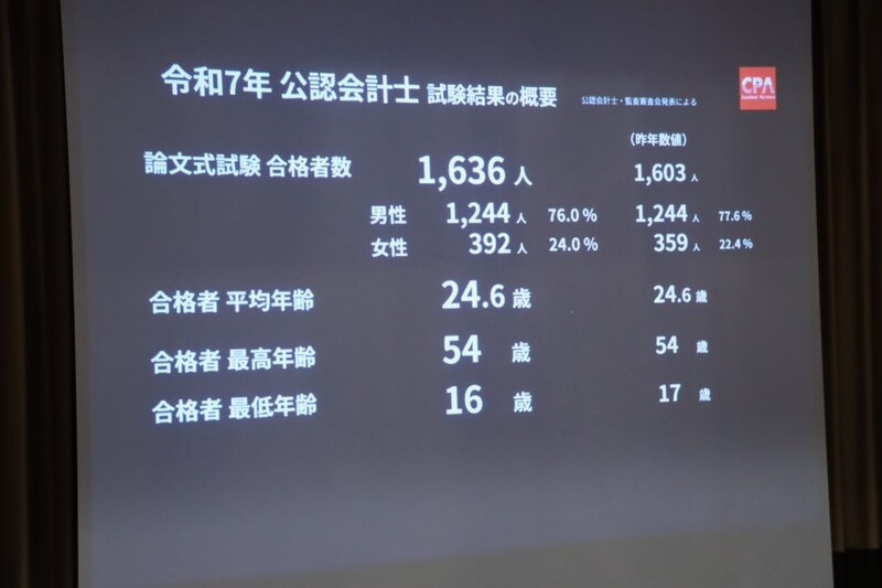 2025年度に公認会計士試験に合格した1,636人の中で1,046人(速報値)と、実に63.9%もの合格者数を誇るCPA。