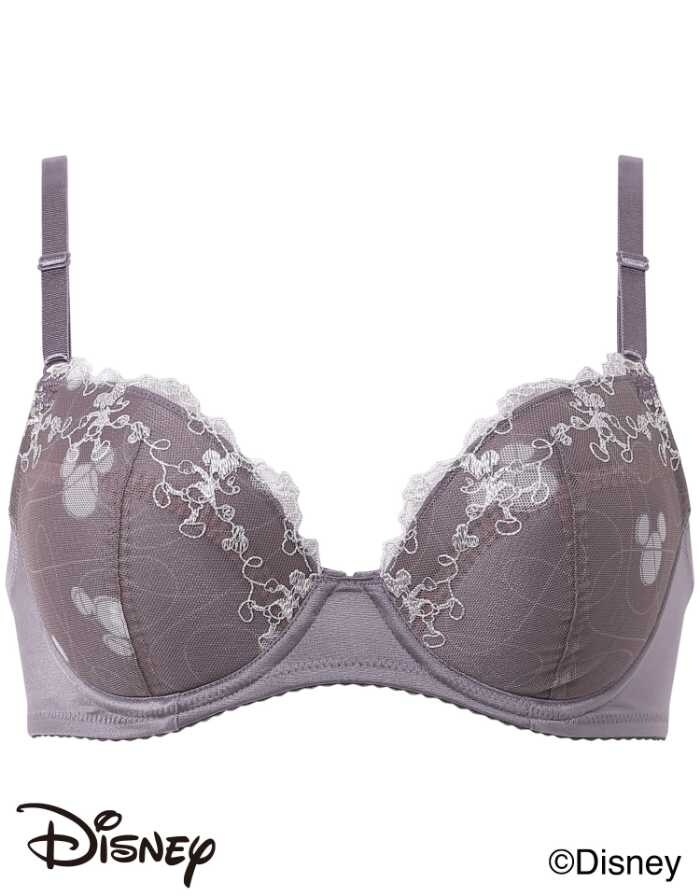 今回登場したディズニーデザインの[ナチュラルアップブラ](品番:KB2063)は、刺繍とプリントでミッキーを表現した、ラインタッチとシルエットの2パターン展開。