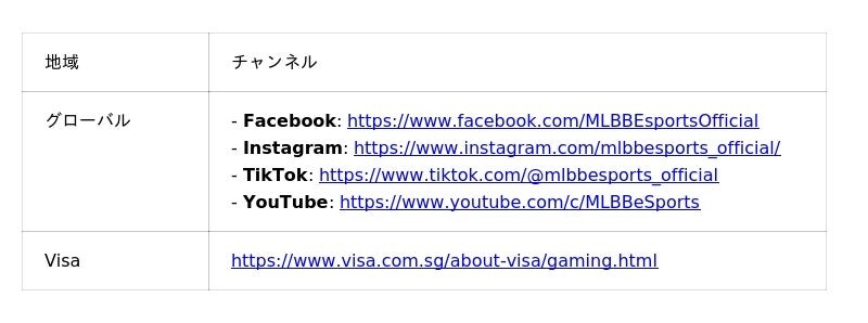 モバレEスポーツに関する詳細は、以下の公式ソーシャルメディアチャンネルをご覧ください: