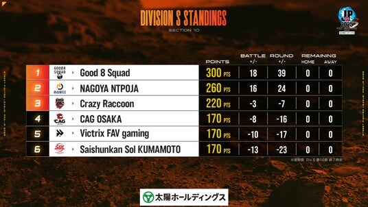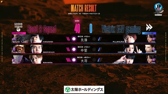 40-0で「Good 8 Squad」が勝利。昨年度王者は本節を1位で通過し、プレイオフに挑む。