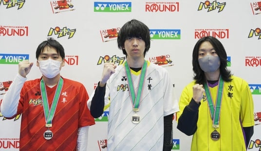 左から、準優勝・SK選手(岐阜県)、優勝・ファミリーァ選手(千葉県)、第3位・もわくん選手(京都府)