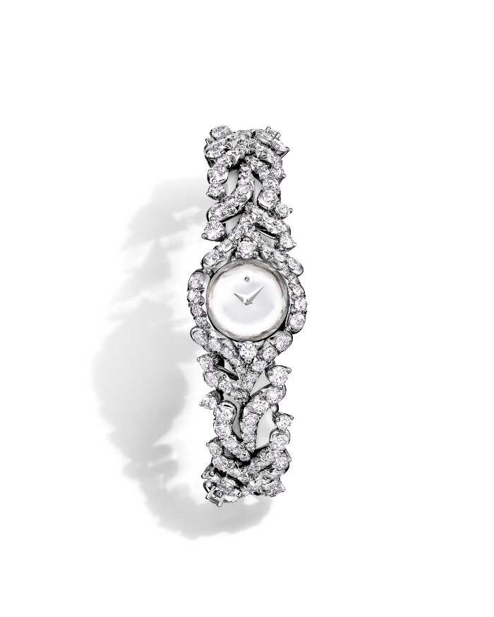 「オーシャン フローラ」からは、マザーオブパールの文字盤にターコイズを配したハイジュエリーウォッチが登場。同デザインのブレスレットと連動し、唯一無二の傑作に。