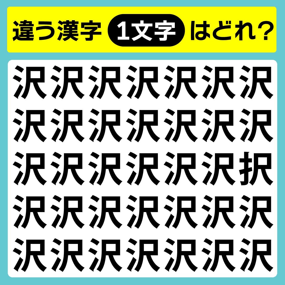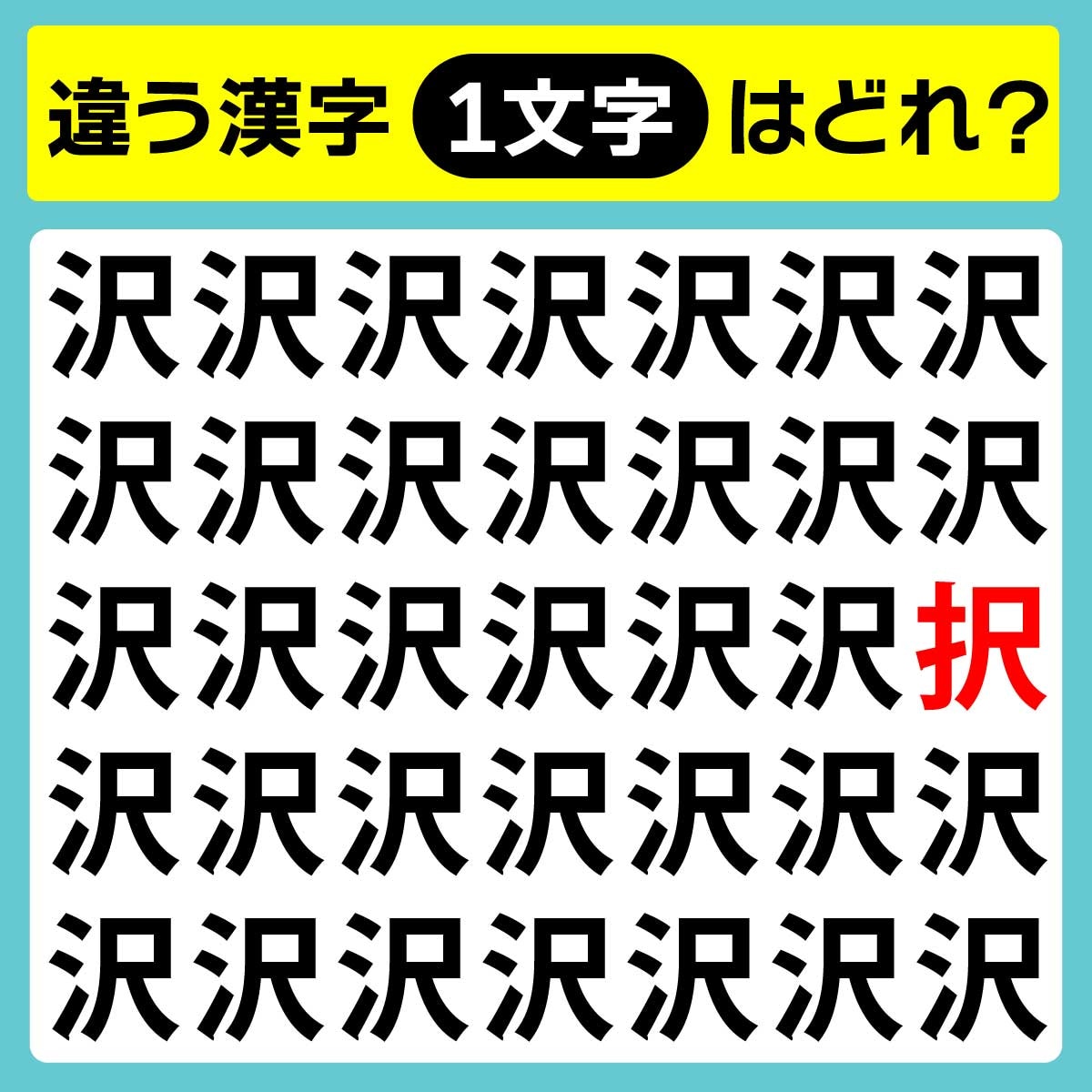 違う漢字は、上から3列目、1番右の文字。