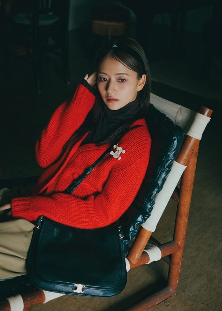 ほっこりとした赤とベージュのスタイリングを、引き締める黒の小物。2026年スプリングコレクシ ョンの新作バッグは現在、伊勢丹新宿POPUPにて展開中。