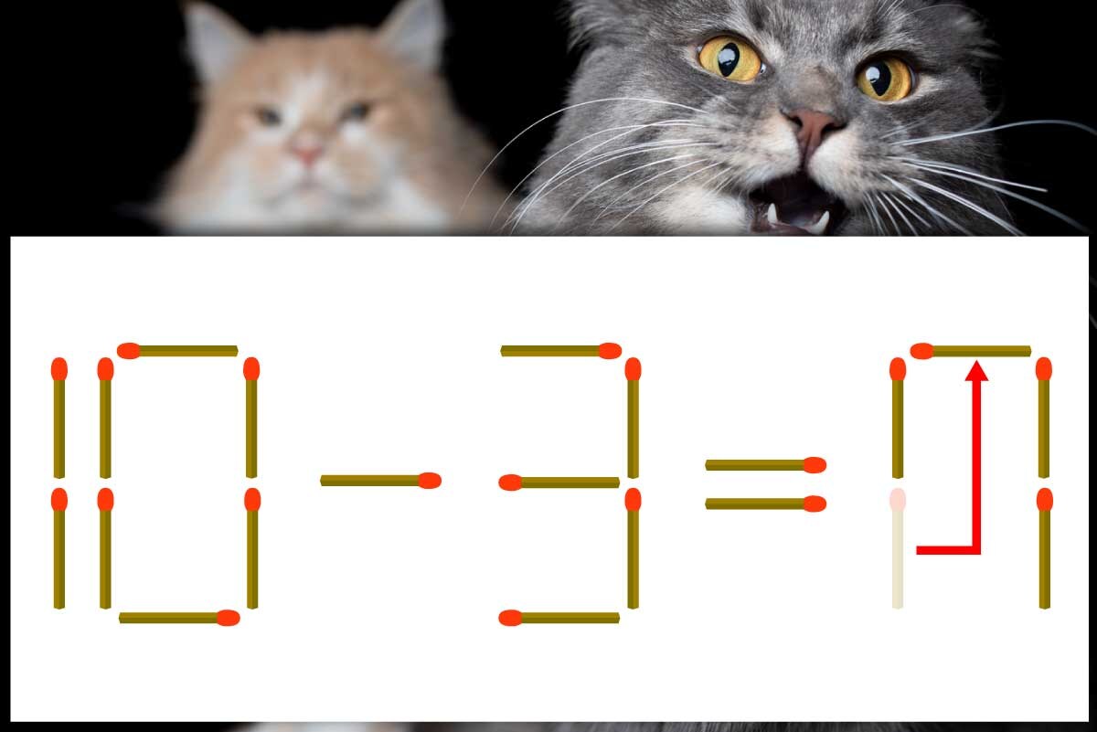 【問題】マッチ棒を1本動かして式を正しくしてください。