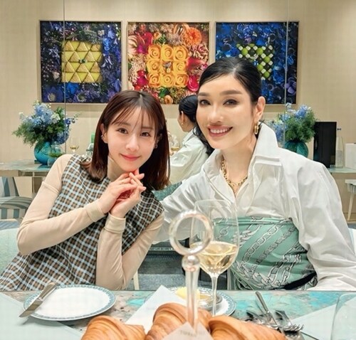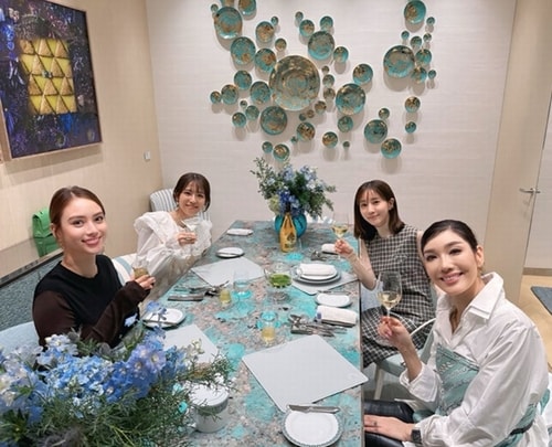 「SATC」みたいな四人の並んだ写真が好き」とアンミカ、田中、滝沢、若槻の4人が並ぶショットや、シェフ・庄司夏子による美しい料理や、有名な「フルール・ド・エテ(マンゴー)」を収めたスイーツ、「現代建築の巨匠ピーター・マリノ氏が手がけた建築に、ティファニーブルーのアートに囲まれた空間は、特に天井のティファニーボックスが印象的」と紹介し、こだわり抜かれた内装の写真なども公開した。