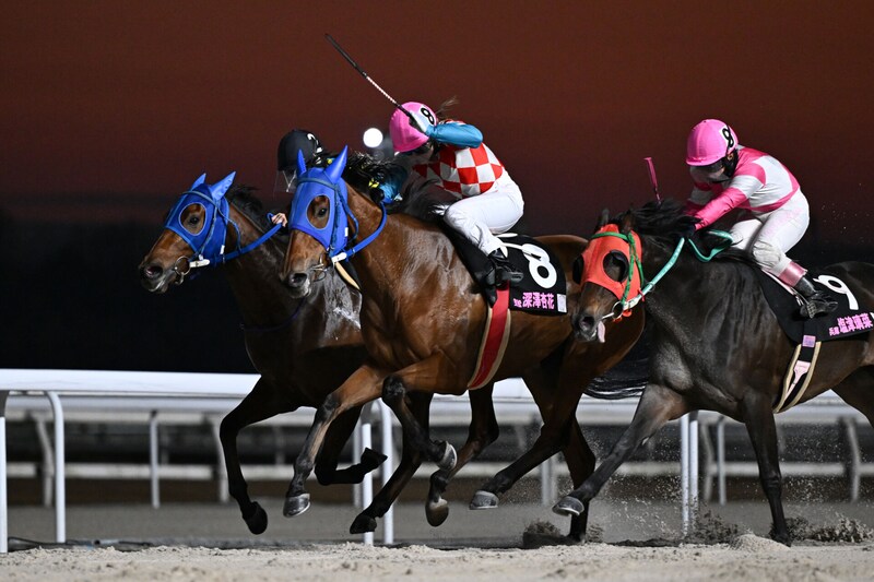 第1戦(ダ1400m)は深澤杏花騎手(笠松)騎乗のベアショットが外から差し切って勝利。2着に塩津璃菜騎手(兵庫)のスターライトナイト、3着に中島良美騎手(浦和)のオレイニウタイマスが入った。