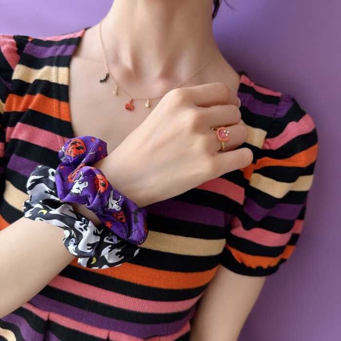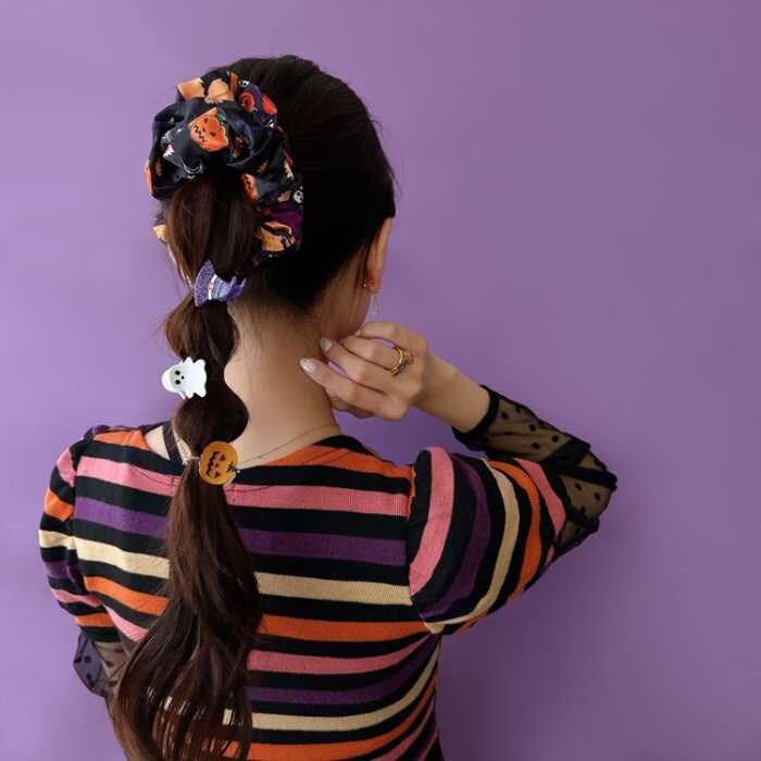 ハロウィンのテーマにぴったりなアイテムが揃っており、トータルコーディネートも簡単に楽しめます。オレンジやブラック、パープルなどの色合いで、シンプルでも華やかな印象に。