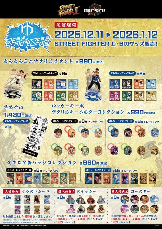 『ストリートファイター6』と『ストリートファイターII』のキャラクターを使用した本イベントオリジナルのグッズを販売いたします。