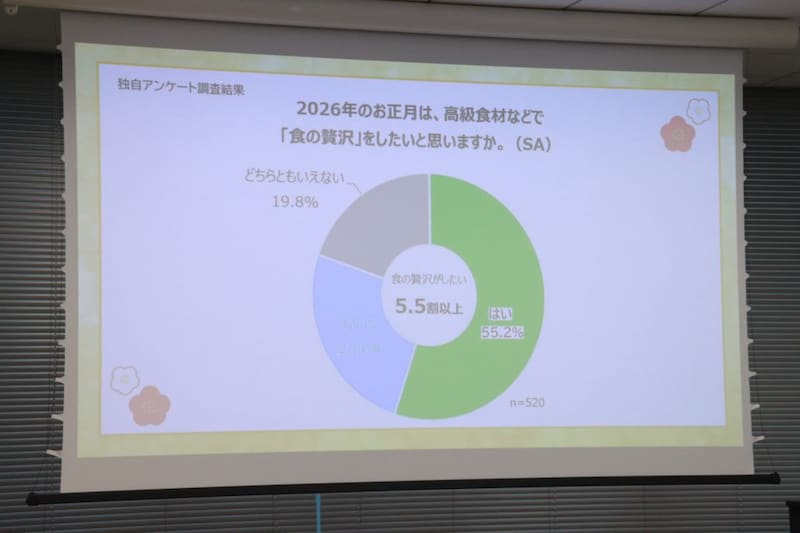 また、お得感やコスパを気にしている一方、2026年のお正月には「食の贅沢をしたい」と半数以上の方が回答していることも分かりました。