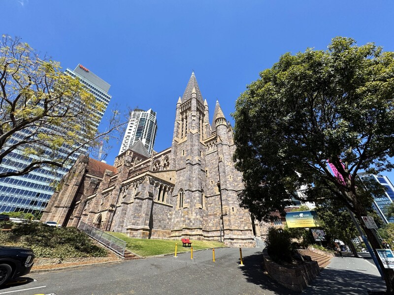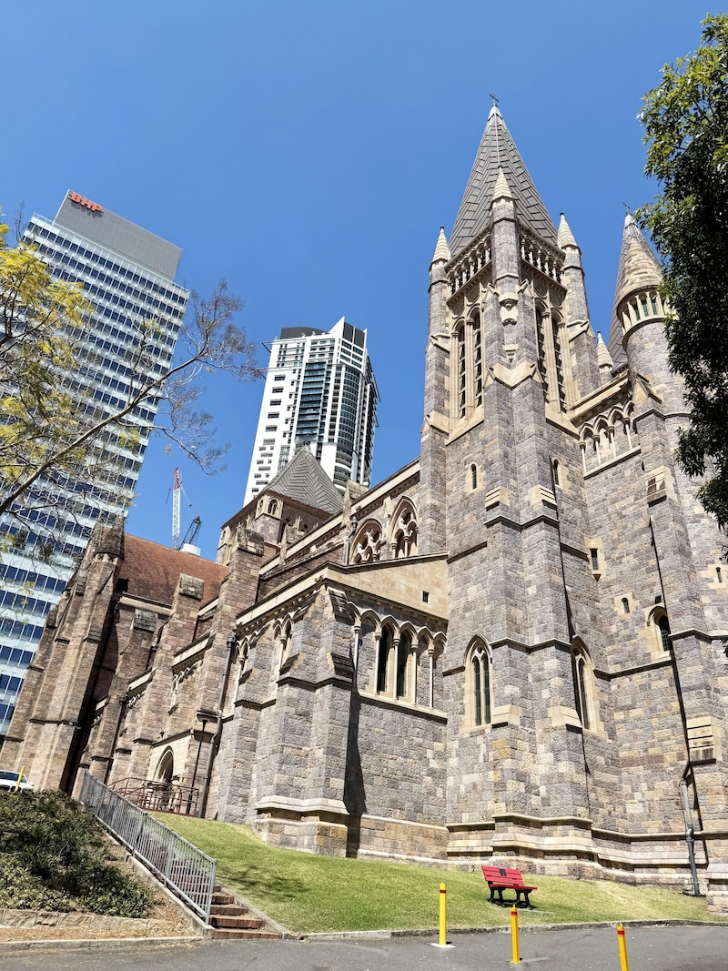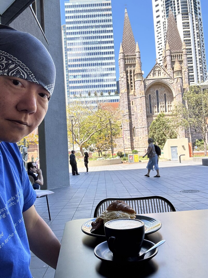 そのカフェは「Linh’s Coffee」(410 Ann St, Brisbane City QLD)。オーストラリア・ブリスベンの中心部にあります。近代的なビルの、野外に面した1階に店舗があるのですが、とにかく風景が良すぎます。都会の絶景とでも言いましょうか、カフェの目の前が整った広場で、さらに大聖堂を眺めながら食事ができるのです。