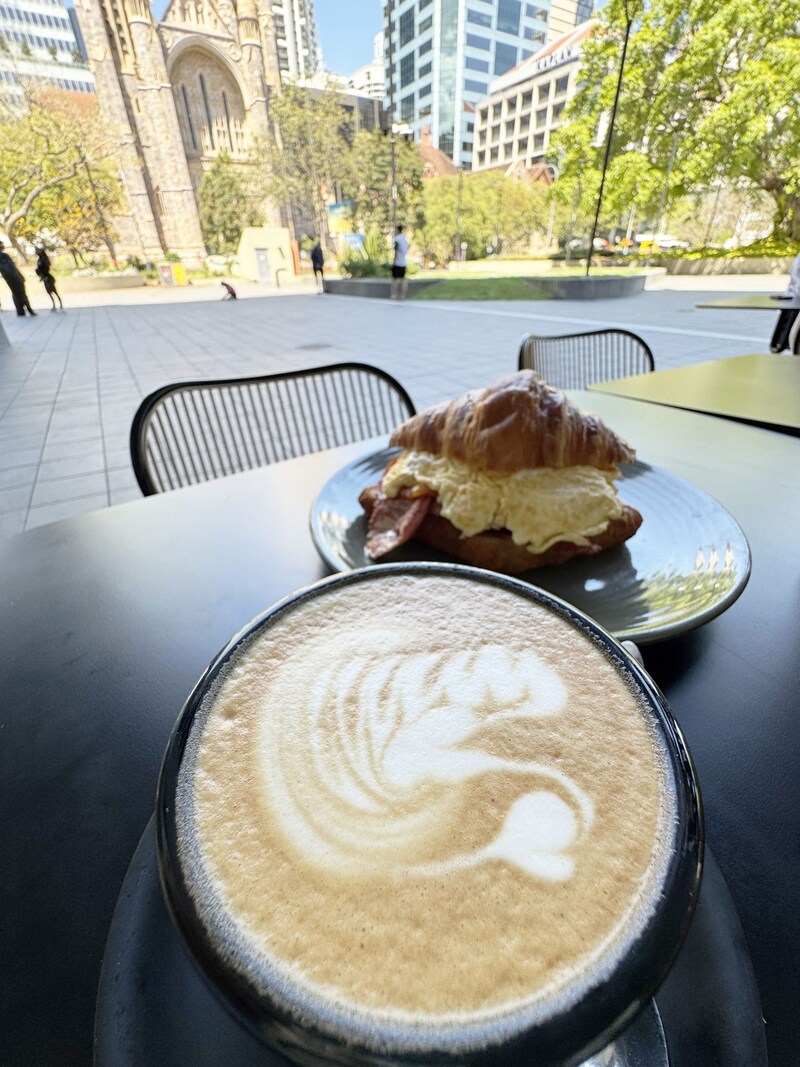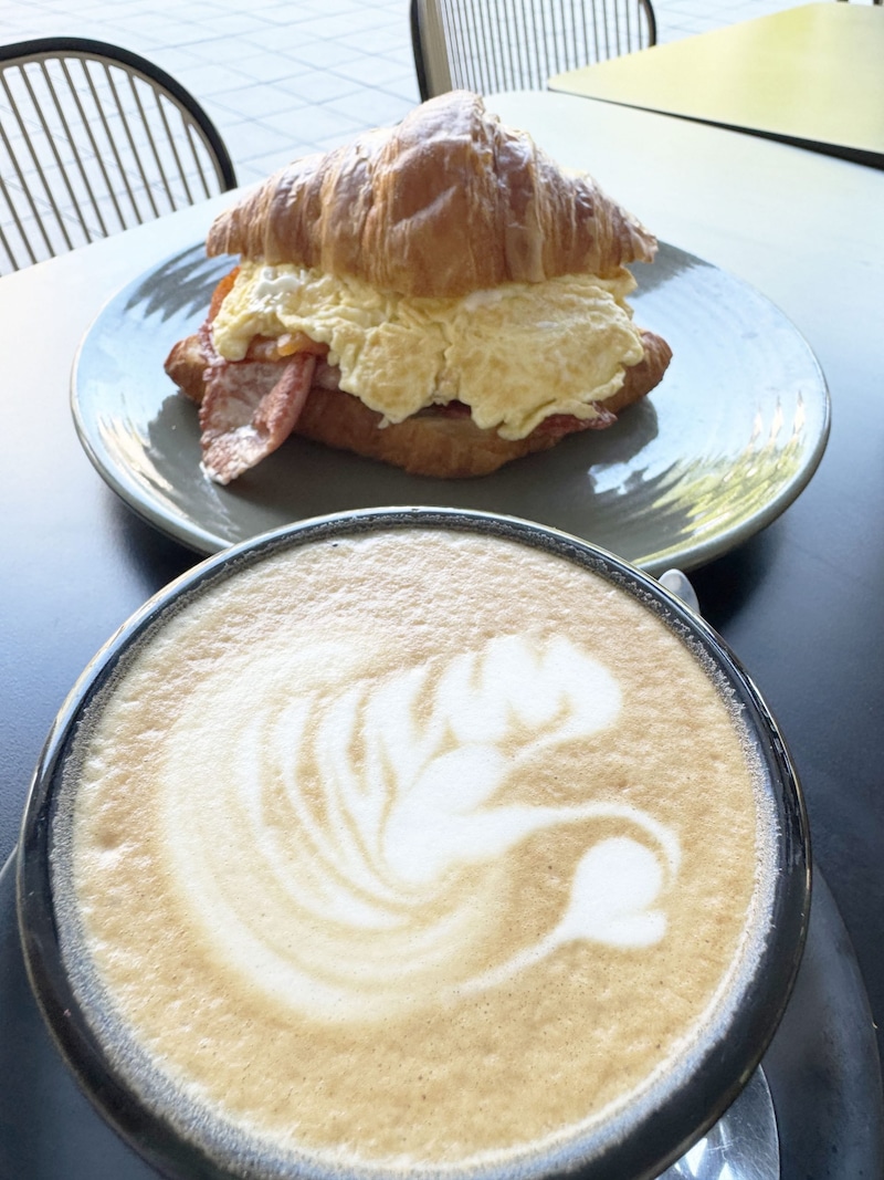 でもこの玉子焼きとベーコン、見えている部分は氷山の一角と言いますか、ほんの一部なのです。クロワッサンのなかに大量に入っているのです。