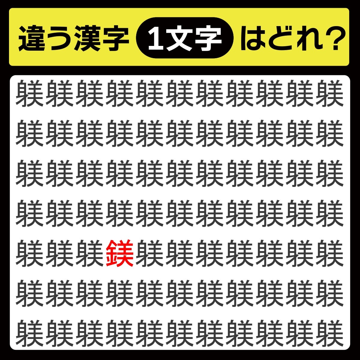 違う漢字は、下から3行目、左から4番目の文字でした!