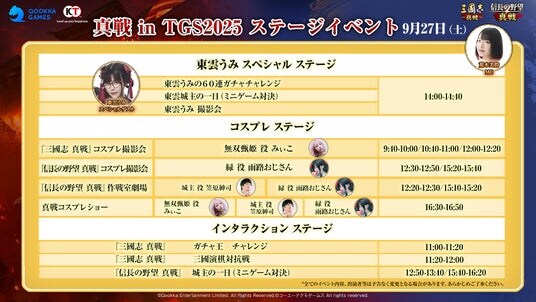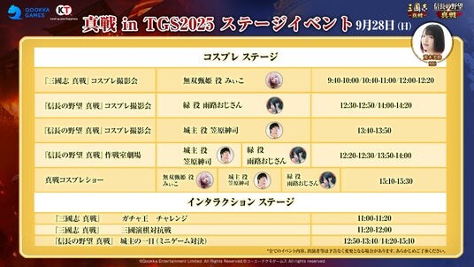 豪華な出演者陣とともに真戦ブースの見どころや、『信長の野望 真戦』の試遊、『三國志 真戦』の新イベント情報などなど……気になる情報を一挙にお届けします!