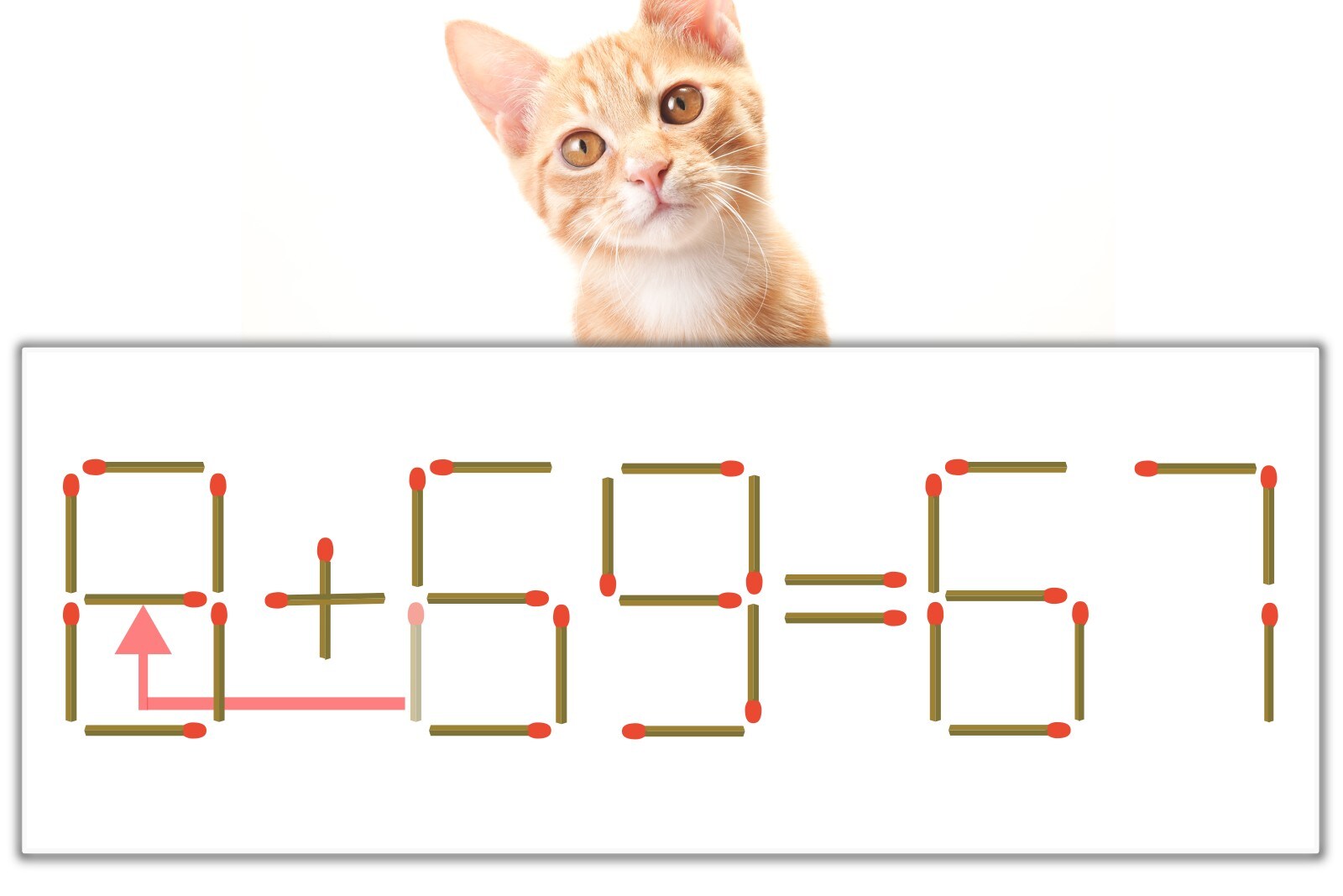 【問題】マッチ棒を1本動かして式を正しくしてください。