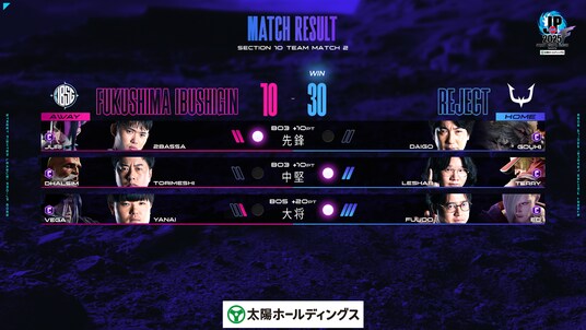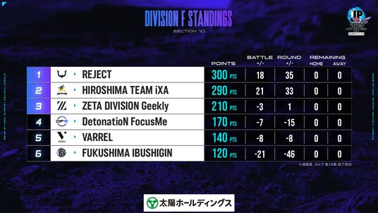 10-30で「REJECT」が勝利。合計300ポイントを獲得し、本節1位でプレイオフへ挑む。
