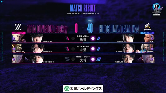 プレイオフの前哨戦の形となった「ZETA DIVISION Geekly」対「広島 TEAM iXA」の一戦。