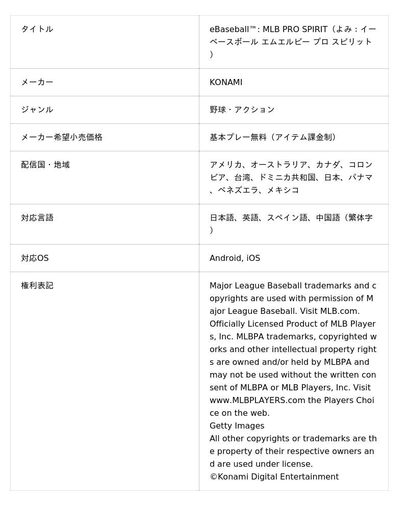 モバイルゲーム『eBaseball(TM): MLB PRO SPIRIT』とは