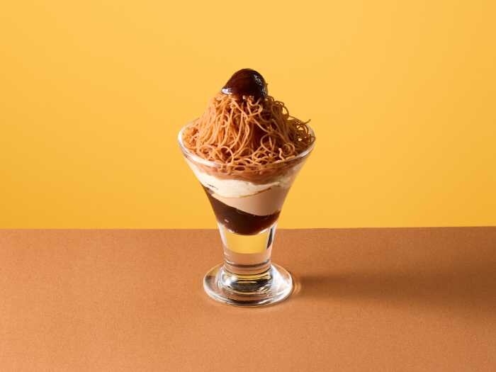 「しぼりたてモンブランのミニパフェ」(490円・税込539円)は、バニラアイスとマロンペーストの甘さがバランス良く、紅茶ゼリーが爽やかさを添える一品。