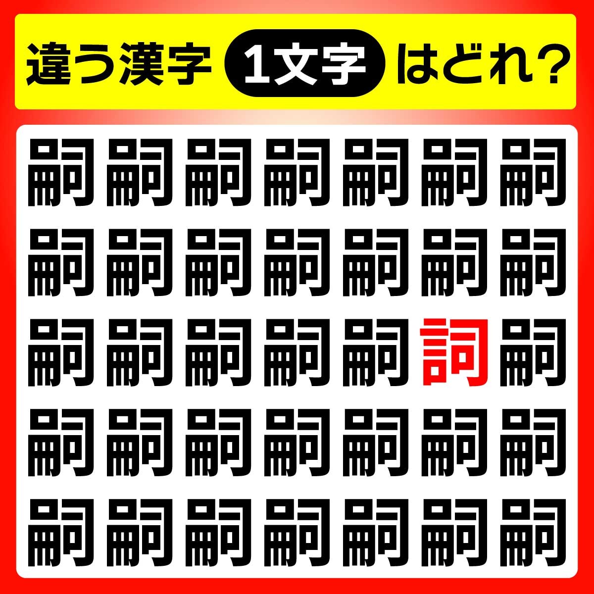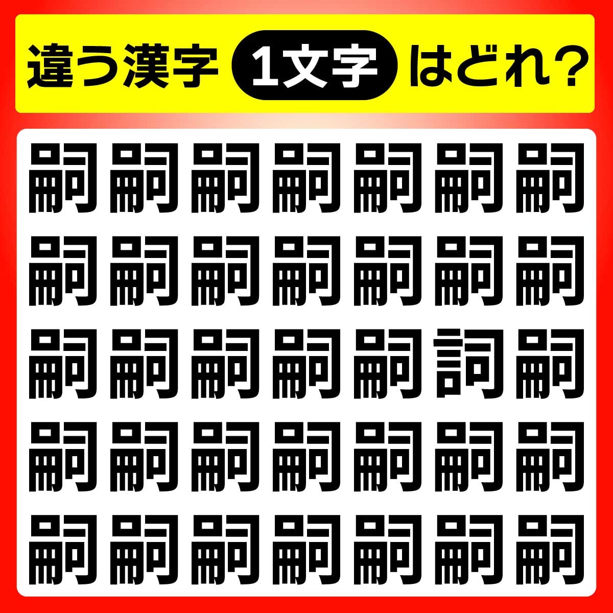 違う漢字は、上から3列目、右から2列目の文字。