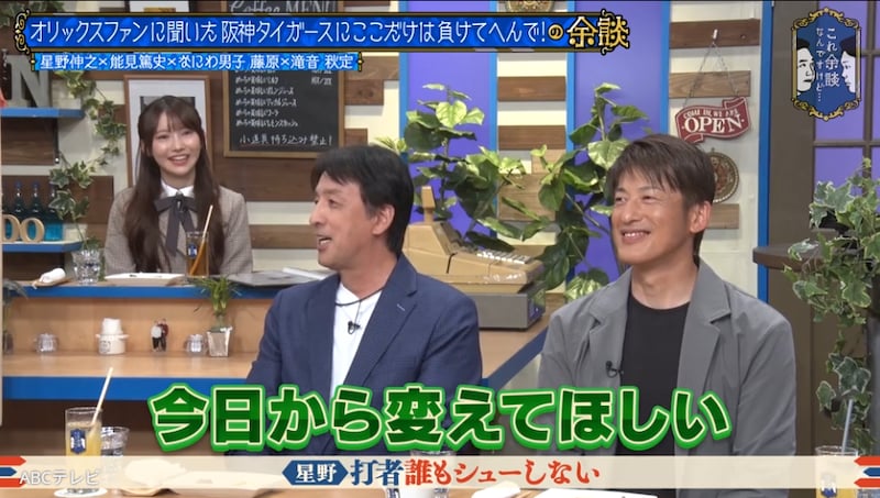 さらに星野が「トレーナーも(当たったバッターが大丈夫かを確かめに)1塁まで行かないと」と語ると、濱家は「シューは星野さんに対するマナー。当たったらシュー」とジェスチャーで実演。星野は「今日から変えてほしいですね」と言葉に力を込めた。