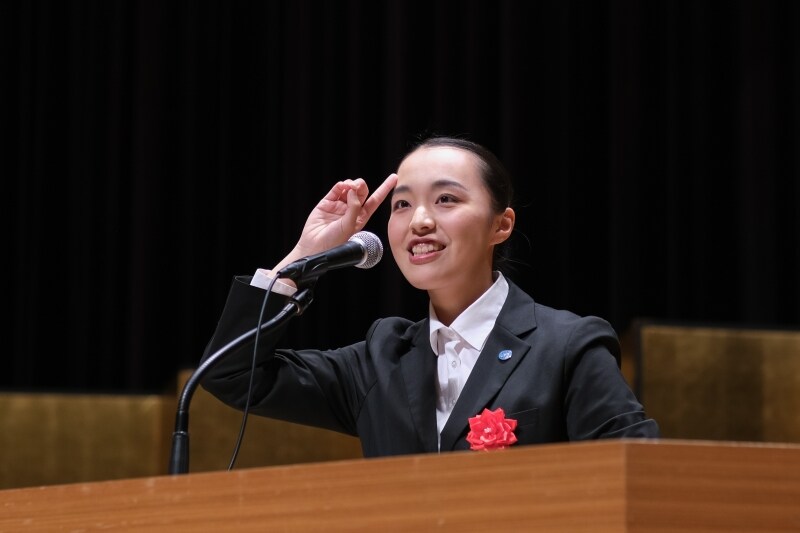 今年の弁論大会では、日本語部門・英語部門それぞれから1名ずつ最優秀賞が選ばれました。いずれも学生自身の経験をもとにした言葉で、今の業界に必要な視点を的確に捉えた内容となっていました。ここでは、その2名の発表を紹介します。