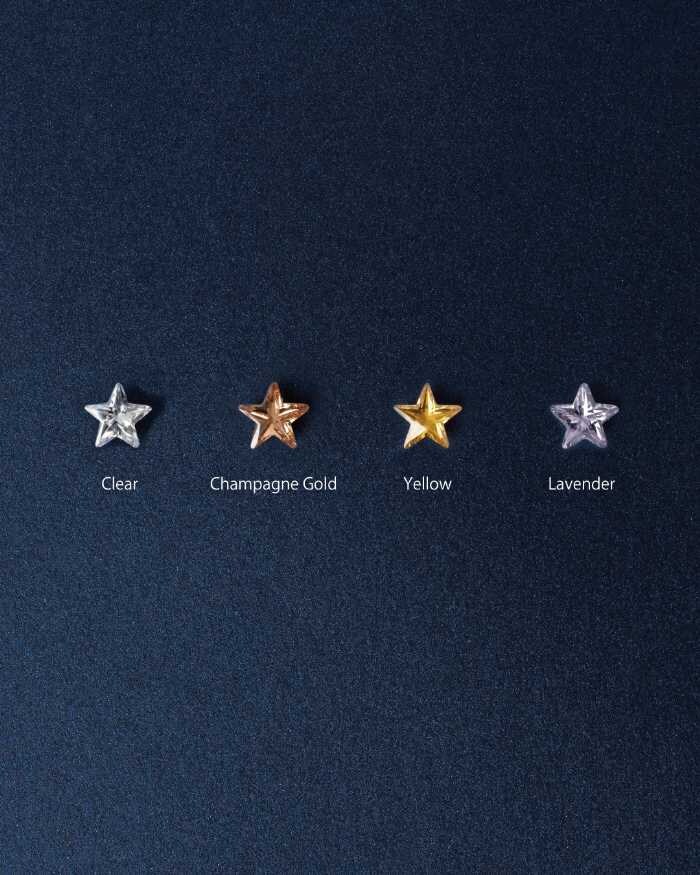3mmのストーンを使う一部デザインは、クリア・シャンパンゴールド・イエロー・ラベンダーの4色限定です。いずれもカラーを選べ、セット使いで華やかさがぐっとアップします。