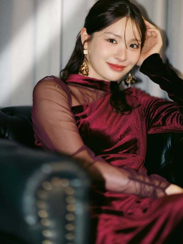 MERCURYDUOの2025年ホリデーコレクションから、エレガントなベロアカットアウトワンピースが登場。ボルドーとブラックの2色展開で、ラグジュアリーなベロア生地が特徴です。