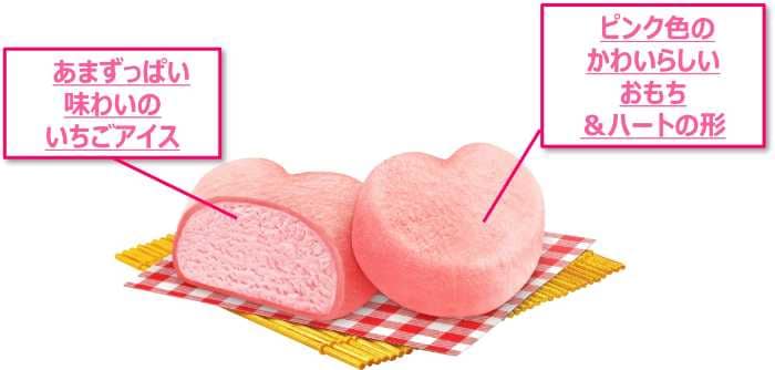 容器から裏返すと綺麗なハートになり、ピンク色のおもちと苺アイスが甘酸っぱくマッチします。