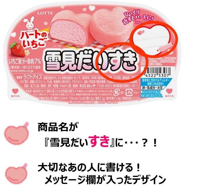 12月8日(月)に全国発売される「雪見だいふく ハートのいちご」(90ml[45ml×2]・194円)は、この季節だけ楽しめるハート形の特別仕様。
