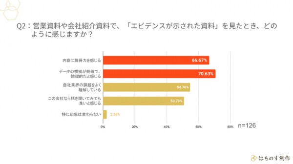 Q2:営業資料や会社紹介資料で、「エビデンスが示された資料」を見たとき、どのように感じますか?