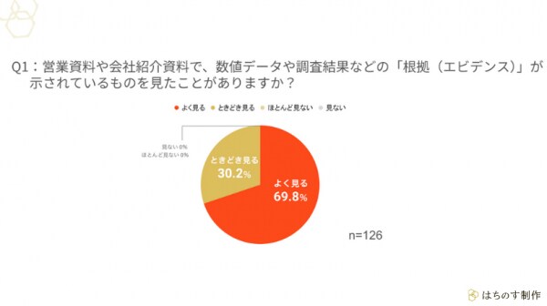 Q1:営業資料や会社紹介資料で、数値データや調査結果などの「根拠(エビデンス)」が示されているものを見たことがありますか?
