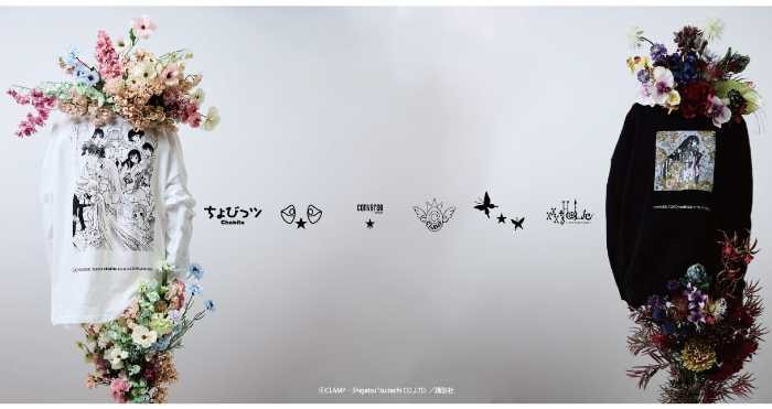 第一弾コレクションのアパレルは、CLAMP作品の象徴モチーフをあしらった3型。