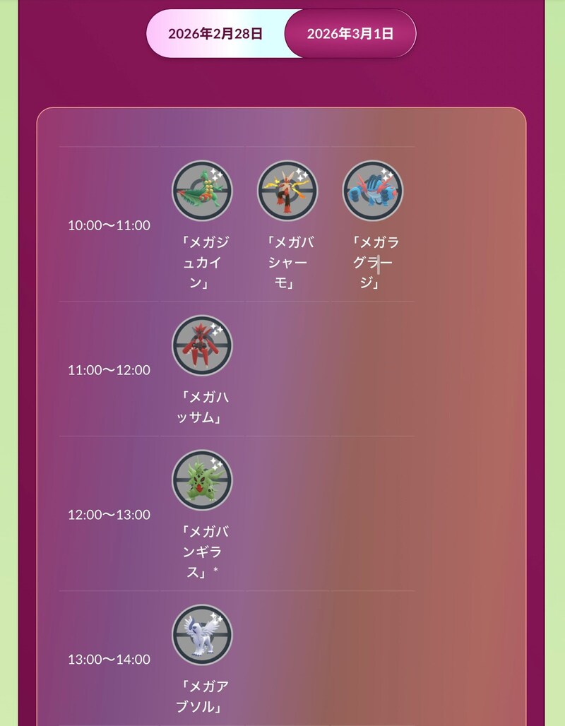 ▲こちらは3月1日の分。「メガハッサム」「メガバンギラス」「メガアブソル」の横の余白、こちらもなんだか不自然では……?