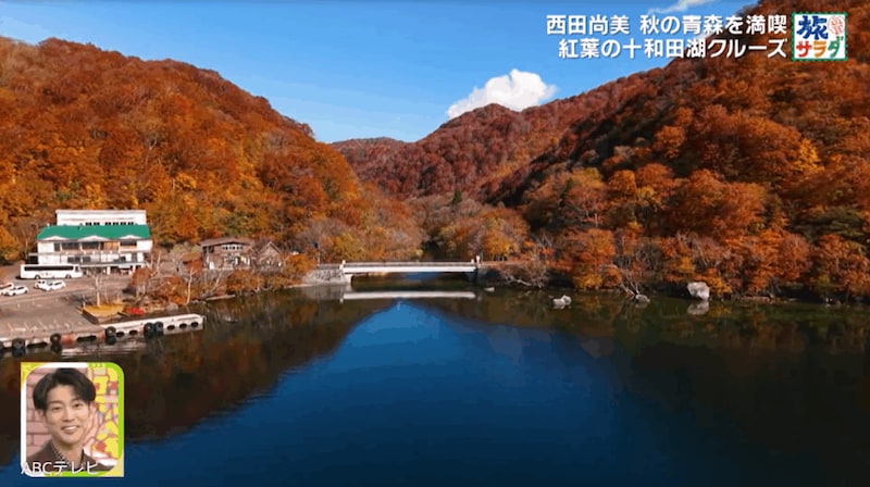 そんな西田が秋の青森県をめぐる旅は、紅葉の最盛期を迎えている⼗和⽥湖の遊覧からスタート。秋色に染まる木々を船から眺めた西田は「わぁ、こんなのを見られるなんて信じられないよ」と驚嘆の声をもらす。