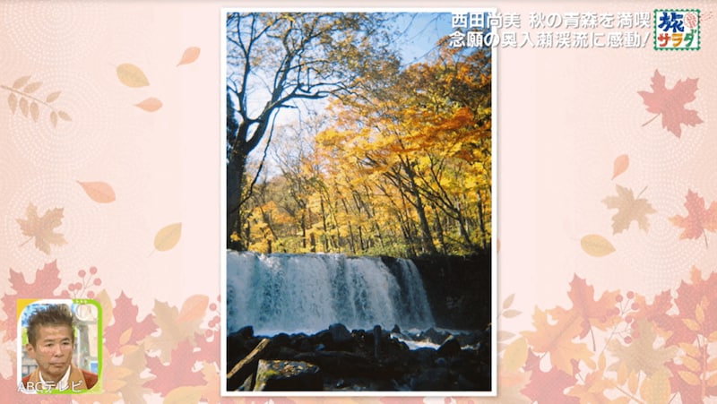 【TVer】『旅サラダ』初登場の西田尚美「私の邪念を全部洗い流して……」 紅葉のベストシーズンに訪れた、青森・奥⼊瀬渓流の絶景に感動