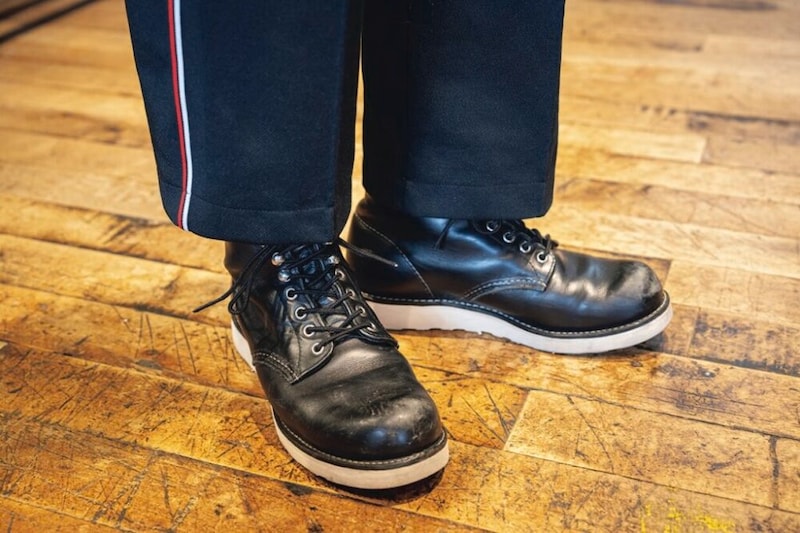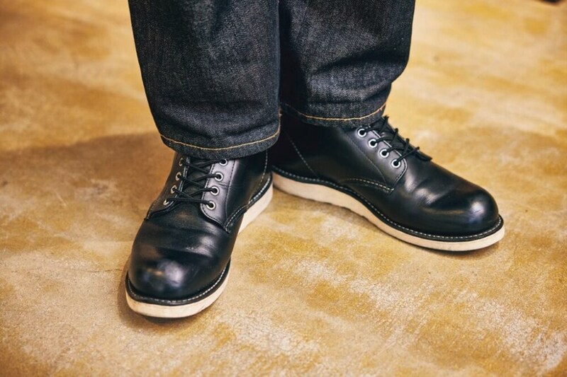初めて履いたRED WINGはスーパーソールだったという駒澤氏は仙台店の初期スタッフ。「もちろんモックトゥ、オックスフォードなども愛用してきましたが、なかでも着用頻度が多いのはラウンドトゥです。これは8年ほど愛用しているため足に馴染んでいて履きやすいです」