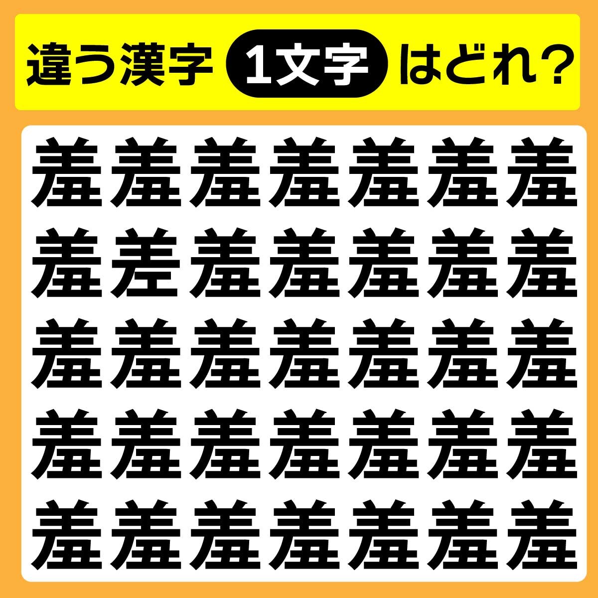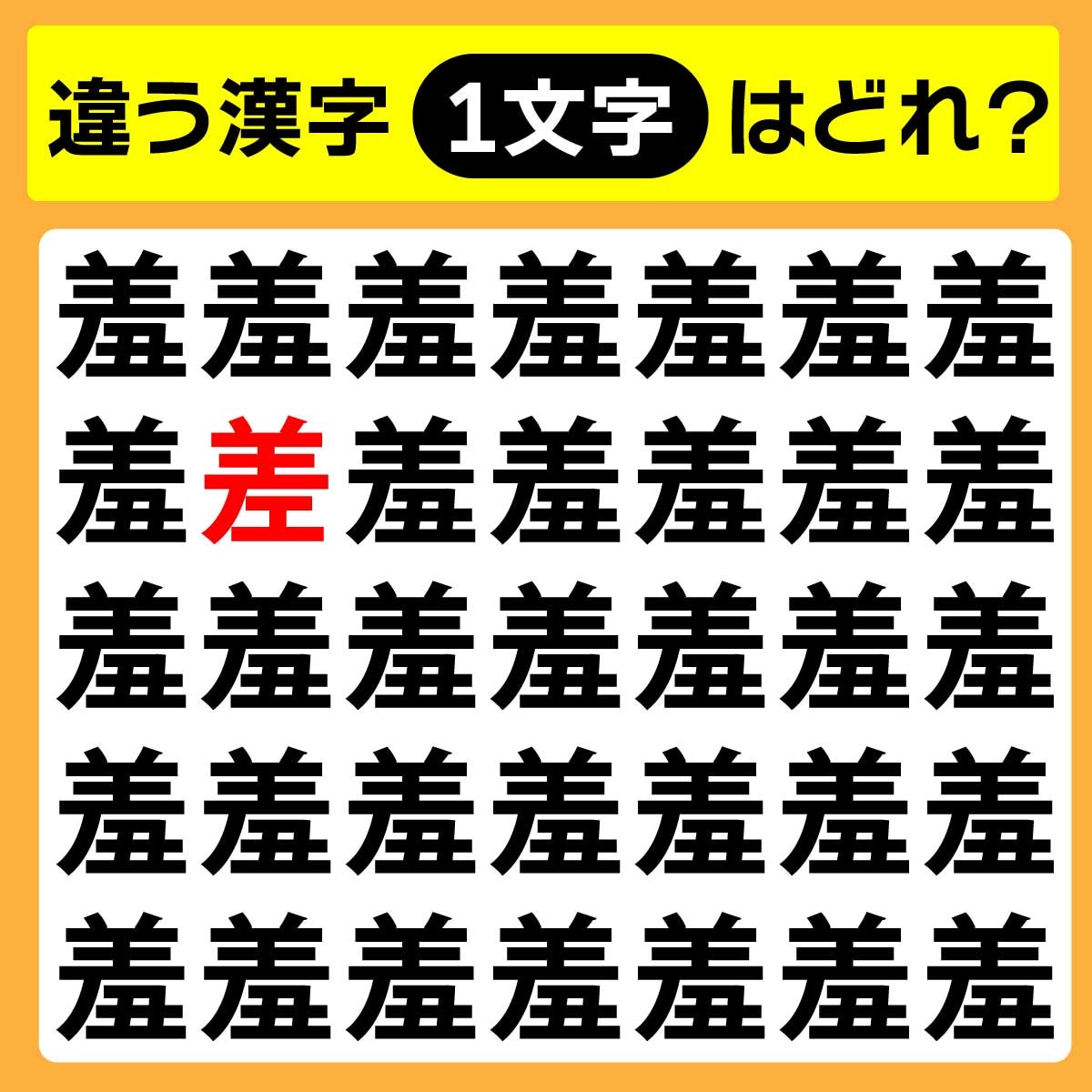 毎日配信中「毎日脳トレ」の時間です! 本日のクイズは「漢字のまちがい探し」に挑戦♪ 同じ漢字が並んでいるように見えますが、実は1つだけ違う漢字が……。よ~く探してみてください!